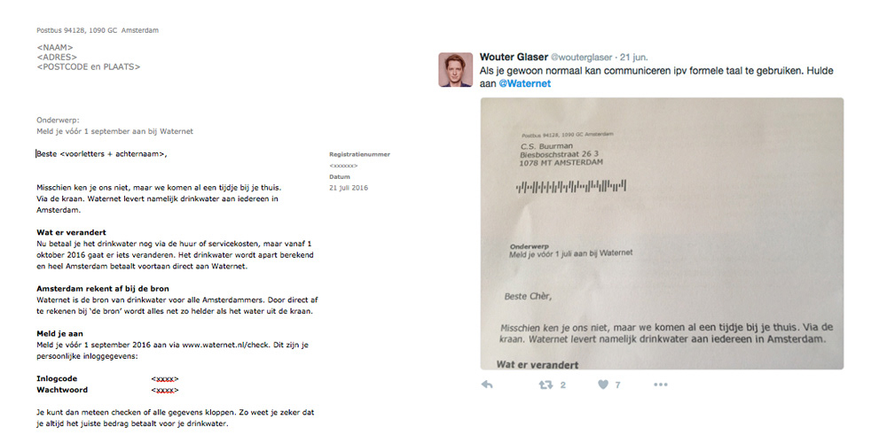 Sommige bewoners betaalden de huur nog via de huur of VVE, nu gaat dat via Waternet. Om deze switch te maken ontwikkelden we een campagne waardoor mensen zich gingen aanmelden bij Waternet. Hiervoor is ook een nieuwe tone of voice ontwikkeld.